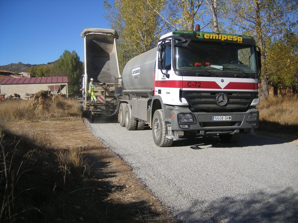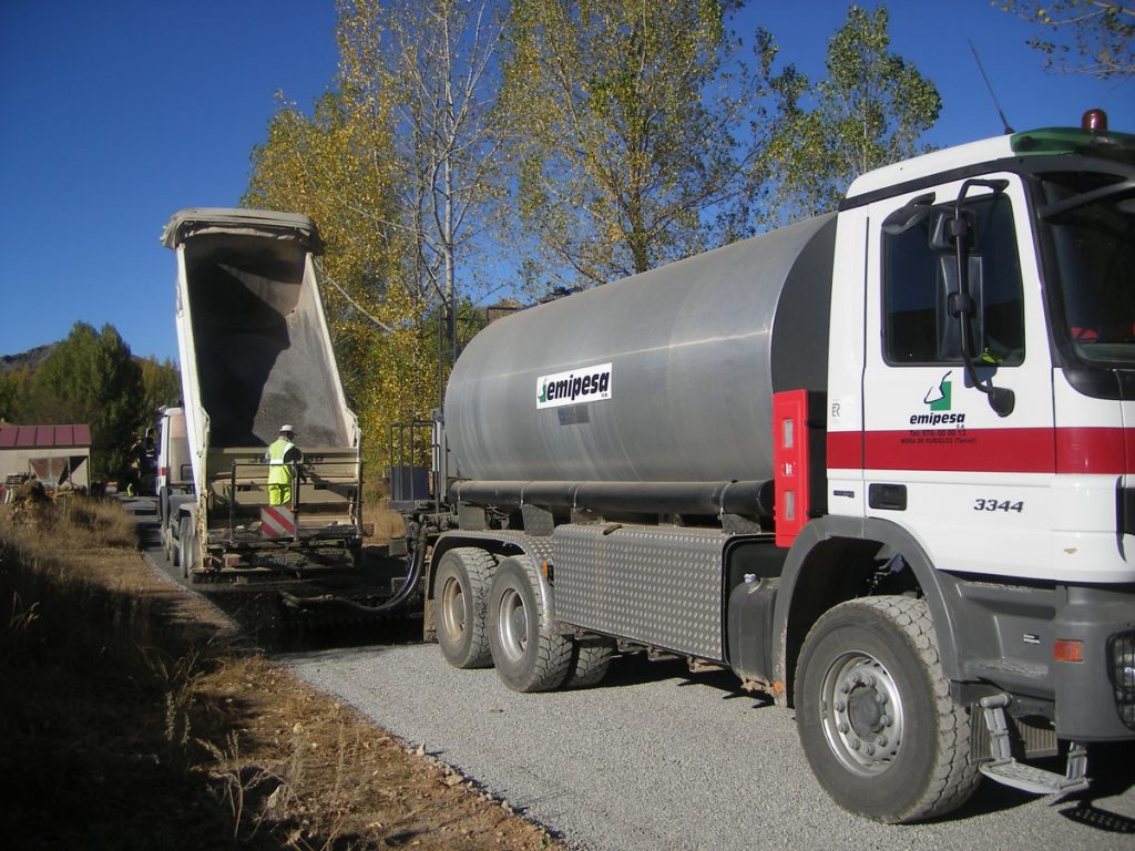 En las instalaciones de Teruel, contamos con un parque de almacenamiento de emulsiones formado por 4 tanques verticales con una capacidad de 320 TN. Gracias a nuestra dilatada experiencia, dentro de este sector, tenemos a disposición dos completos equipos de extendido y compactación de mezclas bituminosas en caliente, capaces de alcanzar altas producciones de firmes y pavimentos.